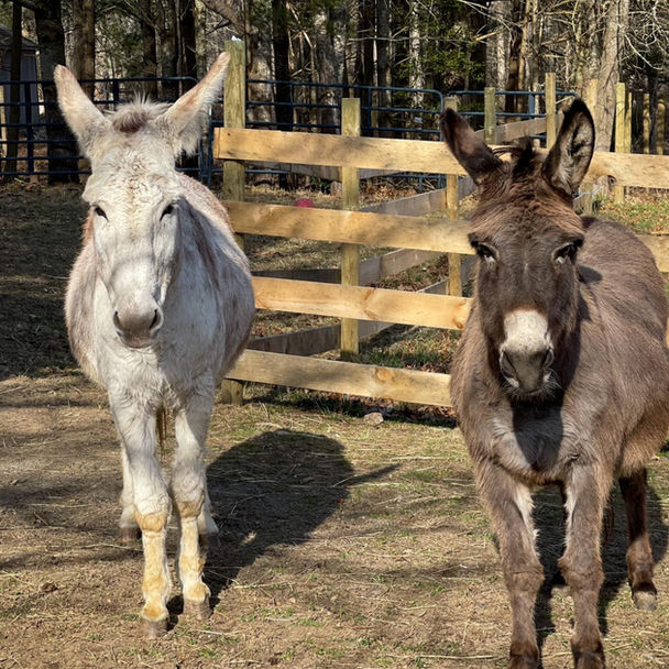 The divas of the farm! They were our first rescues through Peaceful Valley Donkey Rescue. They have been here the longest and we can trust them completely which makes them great role models for new animals. They are also very patient with nervous people and children. We absolutely adore them!!